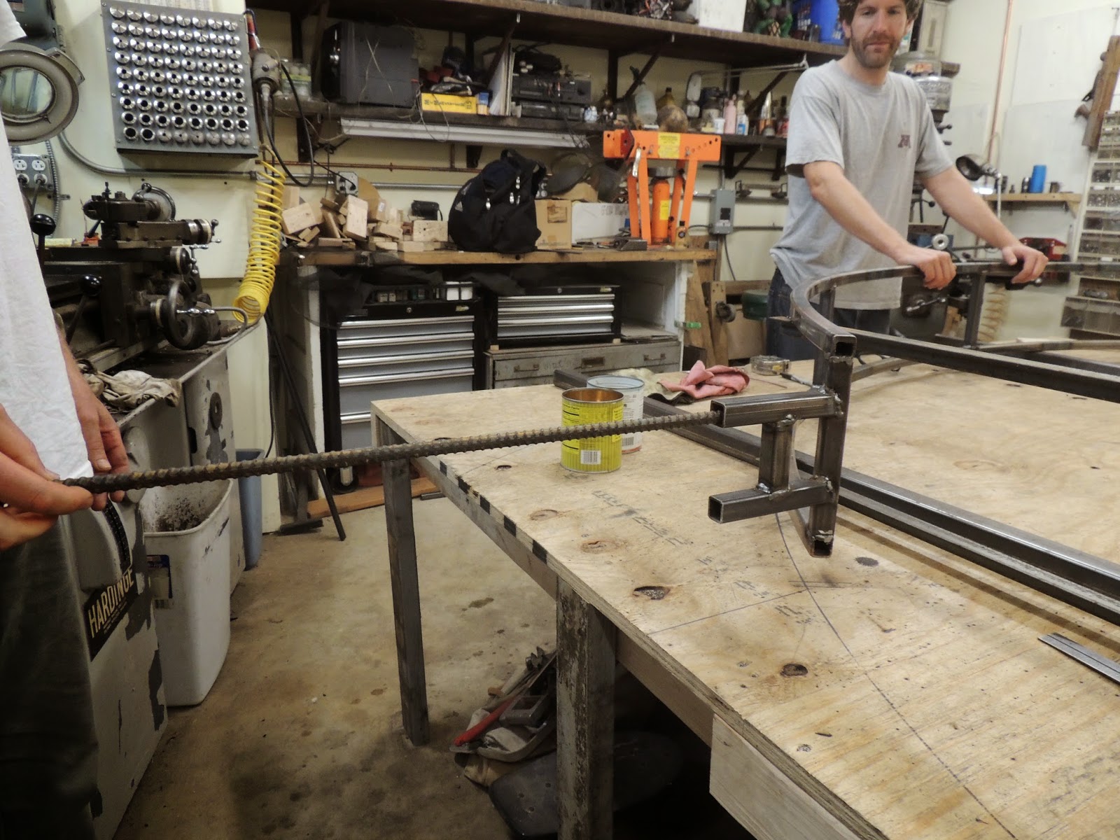 The first piece of tubing Sam and Marc bent on the jig was misshapen. Practice makes perfect.
