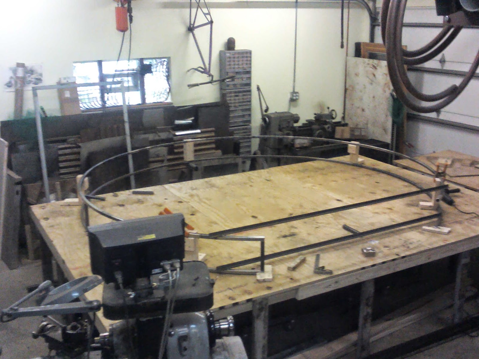 After first bending the tubing by hand in a jig, it was heated and bent in spots with an oxy/acetylene torch to form a perfect 10-foot circle.